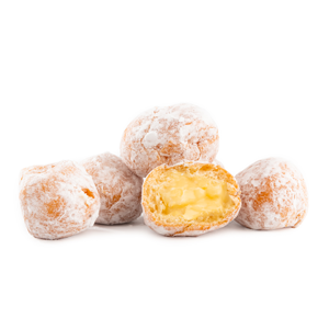 Donut holes filled with bavarian cream and coated with powder sugar